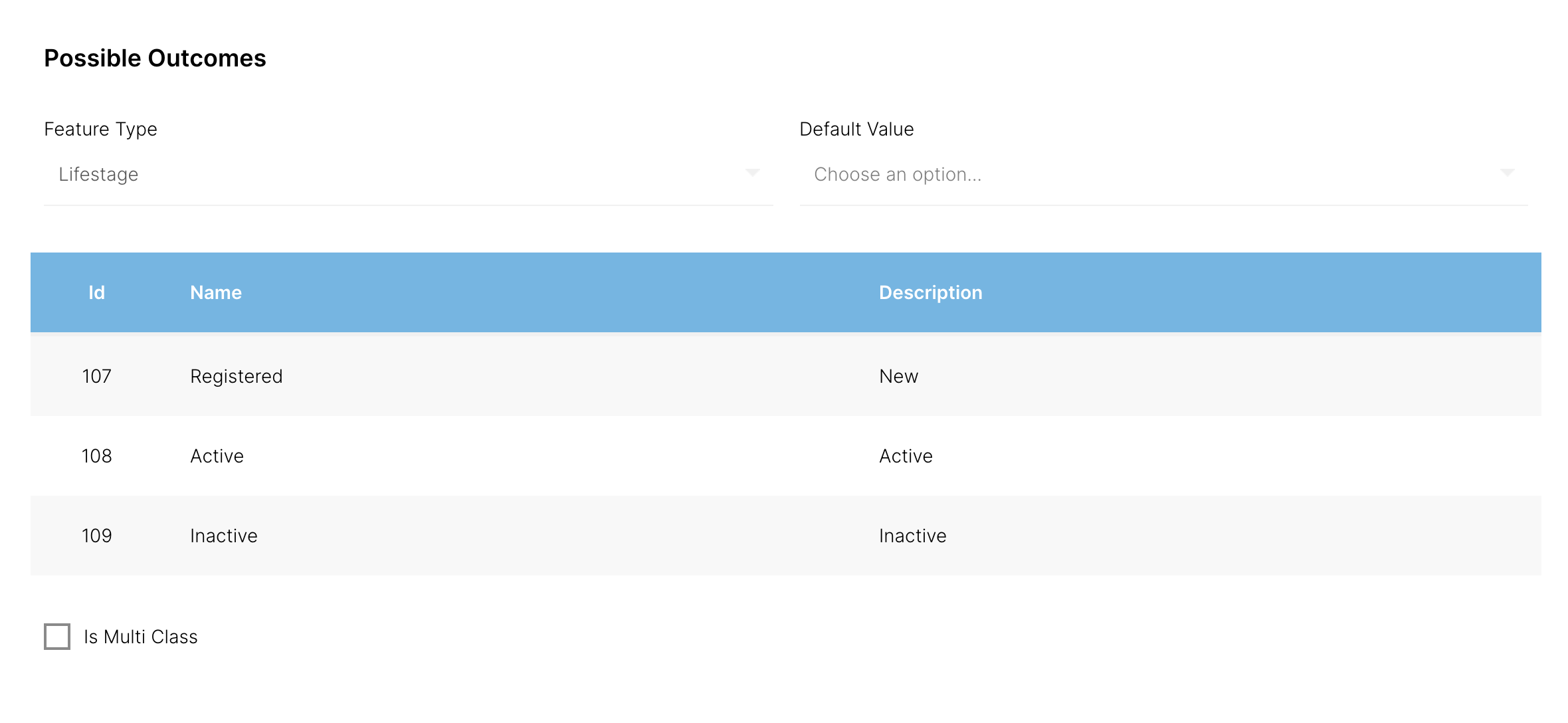 ¿Es Multi-Clase? - Seleccione esta casilla si desea que sea posible que un jugador pertenezca a más de una clase a la vez. En el ejemplo de la imagen de abajo 👇, un jugador sólo puede pertenecer a una Etapa de vida a la vez. Un jugador no puede ser clasificado como Activo e Inactivo al mismo tiempo. Por lo tanto, la casilla 'Es Multi Clase' no está seleccionada para este ejemplo.