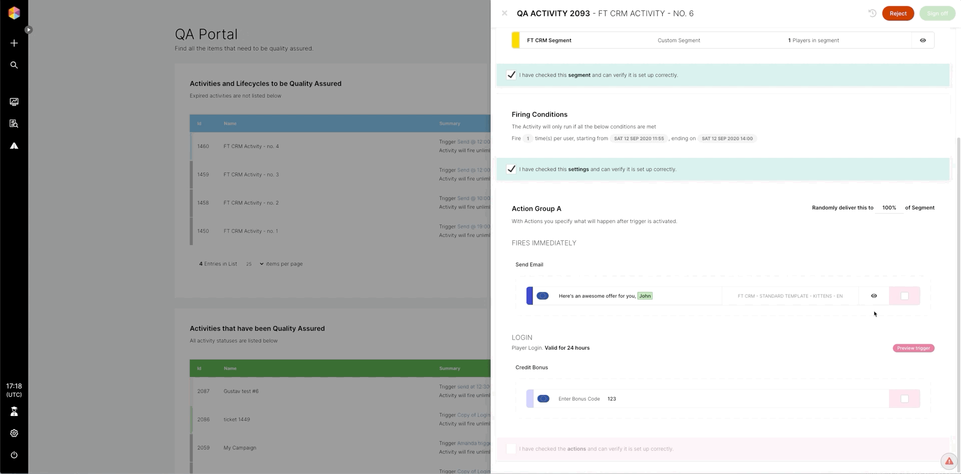Puedes enviar un correo electrónico de prueba en la etapa de QA o dentro de la actividad mientras la estás configurando.