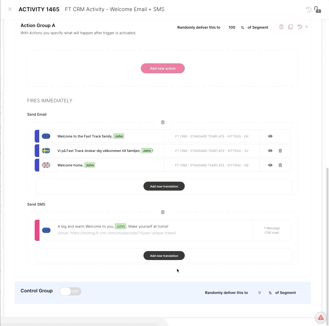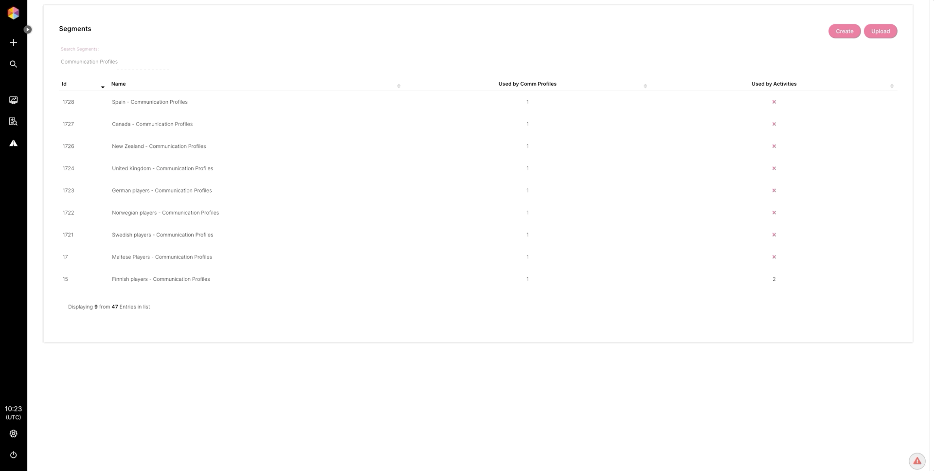 Con la ayuda de los Perfiles de comunicación, tienes la flexibilidad de enviar contenido y ofertas específicas del mercado dentro de la misma actividad. Esta también sería la forma de agregar traducciones. Es por eso que, más comúnmente, un Perfil de comunicación segmentaría el país de registro de un jugador.