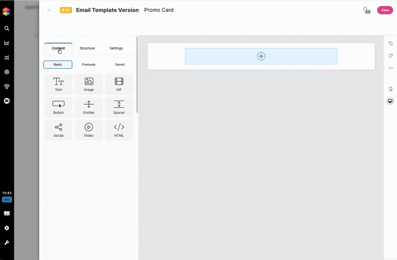 Saved Blocks allow you to store parts of your email design and reuse them later. This is useful for elements that appear often, such as headers, footers, product sections, or contact information.