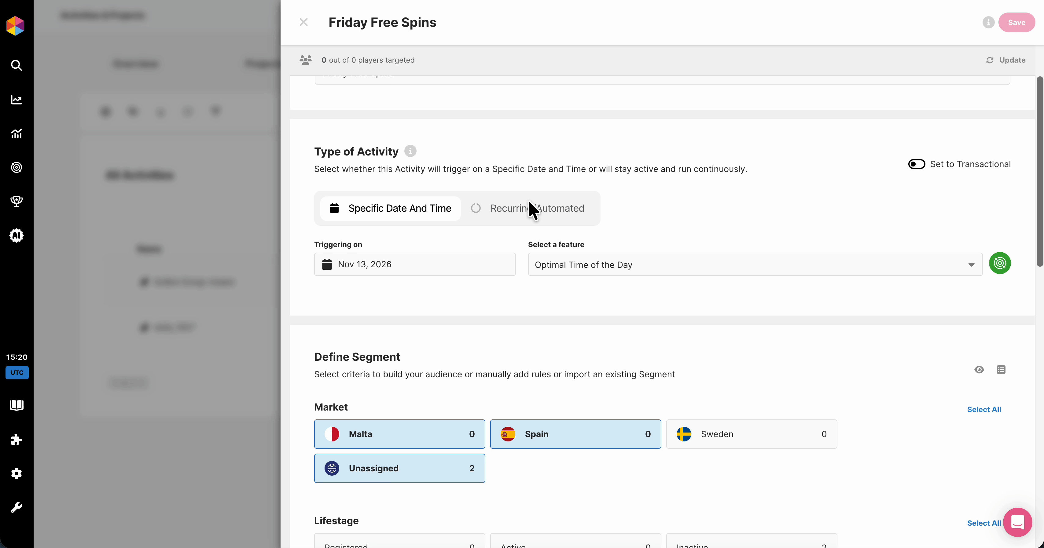 On top of this, we are introducing a new way to build Segments seamlessly in your Activities and Lifecycles using these CRM pillars, and any Player Feature of your choice:
