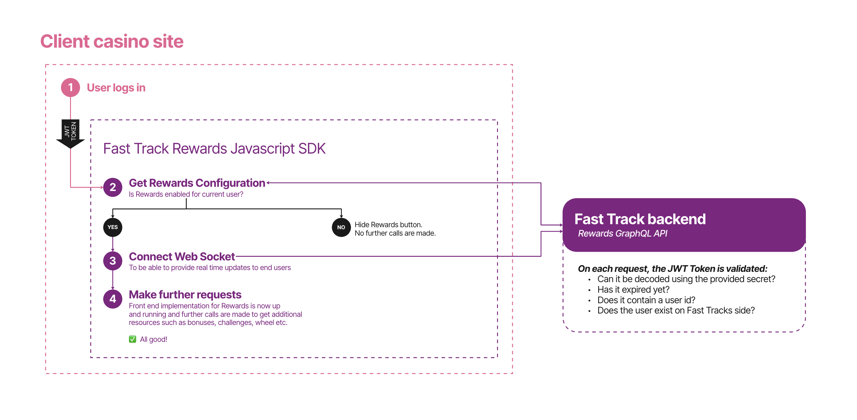 Esta página explica los requisitos de integración para poder integrar Fast Track Rewards. Esta guía es para marcas que no han integrado el SDK de Javascript de Front End de Fast Track anteriormente (y que no tienen la intención de integrar Fast Track Rewards junto con el SDK de Javascript de Fast Track para Notificaciones en el Sitio y Rich Inbox).