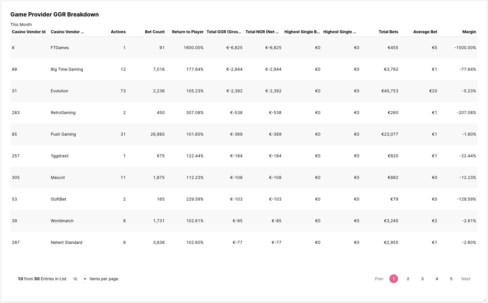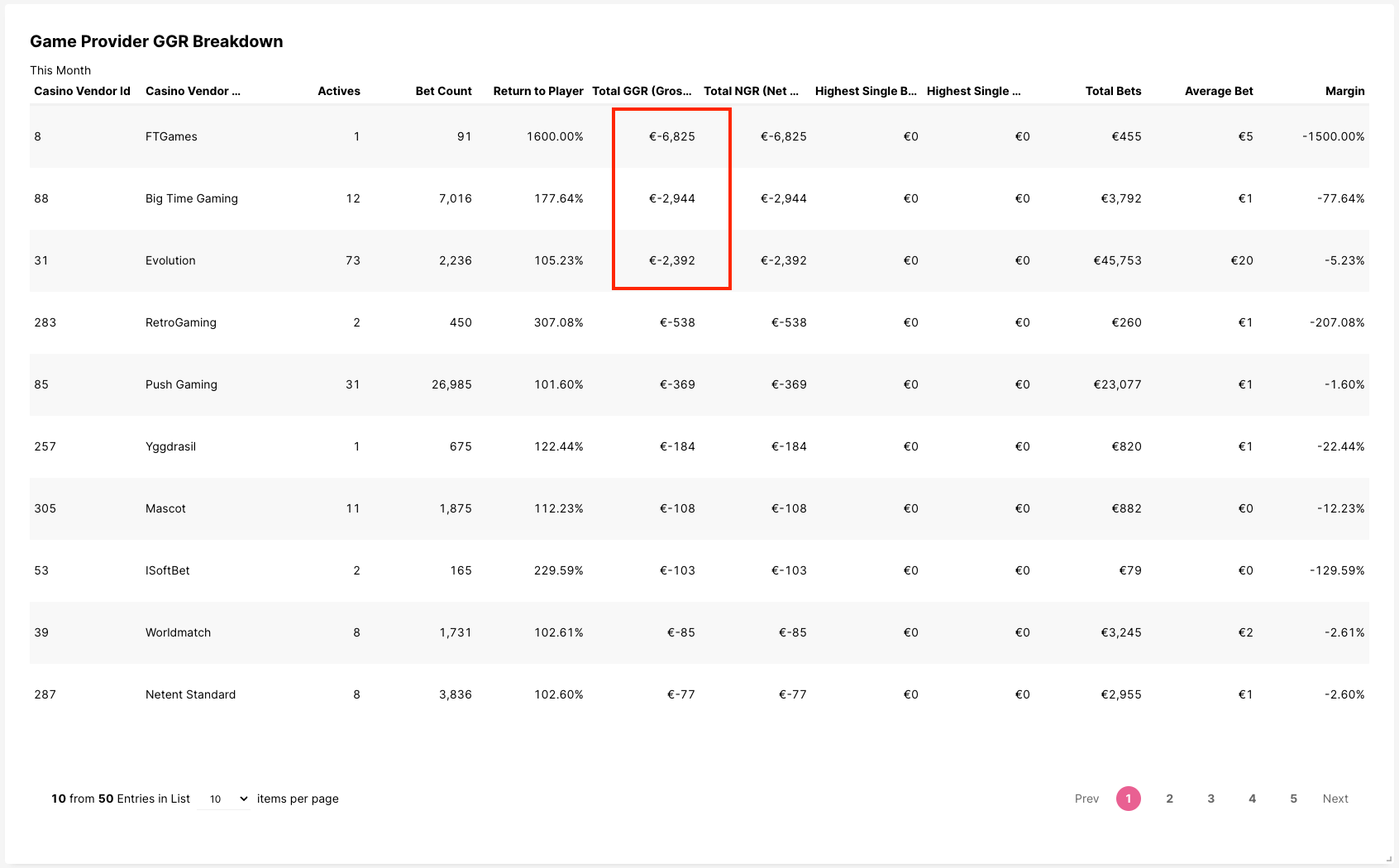 Si a mitad de mes tienes un GGR negativo (lo que significa que estás perdiendo dinero con ese proveedor) con un proveedor de juegos en particular, puedes incentivar a tus jugadores a jugar juegos de ese proveedor para llevar el GGR lo más cerca posible de cero.