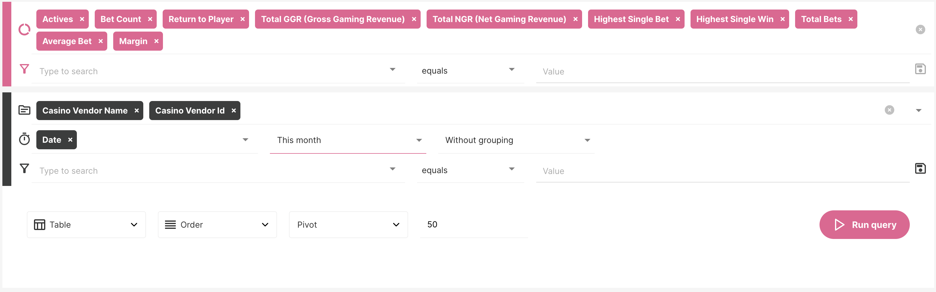 Esta página describirá cómo puedes crear tu propio Dashboard de Desglose de GGR del Proveedor de Juegos para ayudarte a ahorrar en tarifas de proveedores de juegos.