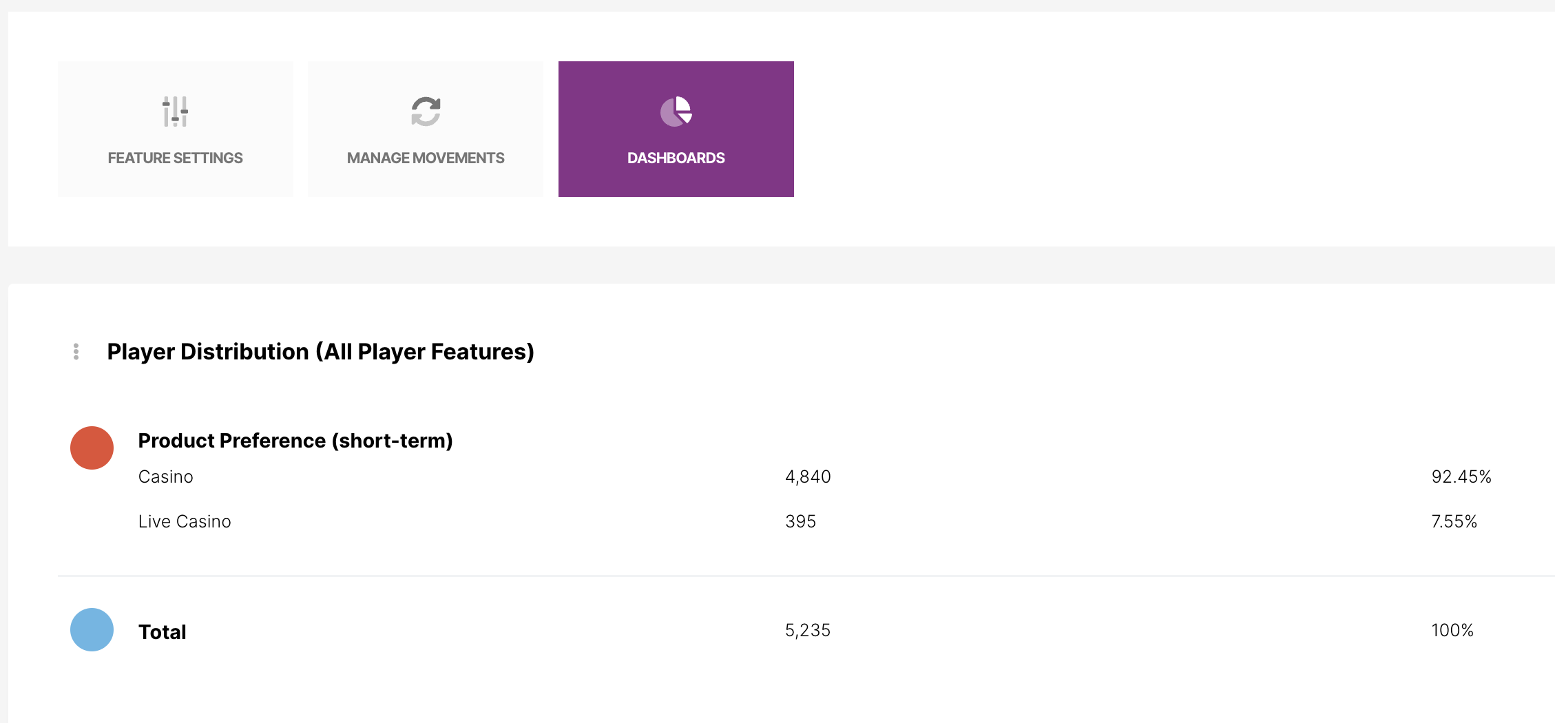 Puedes ver esto suceder en el dashboard de Distribución de Jugadores dentro del Funcionalidad del Jugador: