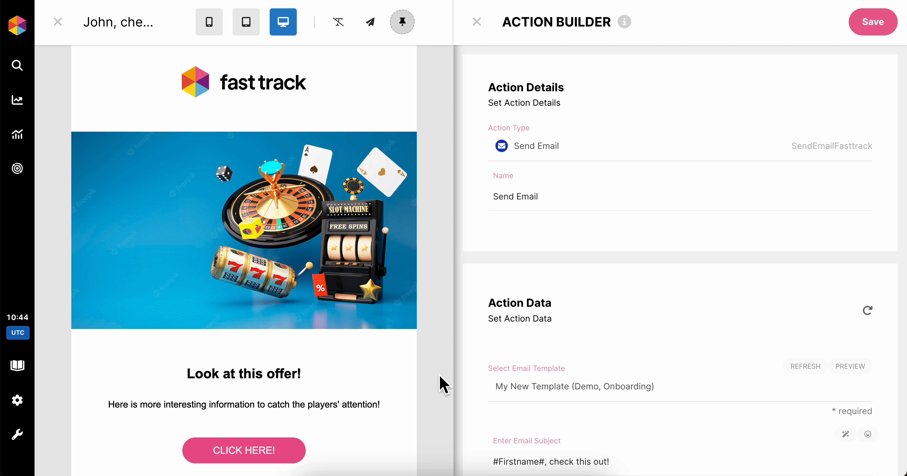 Al igual que con todas las acciones en FT CRM, los correos electrónicos también pueden dispararse en eventos en tiempo real, representando momentos importantes del recorrido de sus jugadores con su marca. Asegúrese de hacer el mejor uso de este canal de comunicación y también de leer más sobre cómo usarlos en FT CRM como buena práctica.