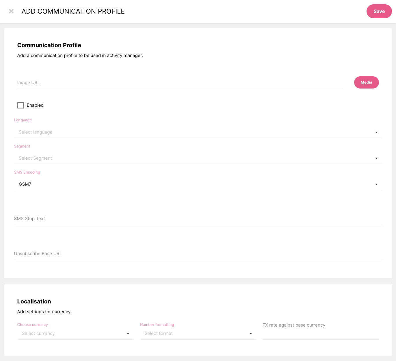 4. Una vez que hayas rellenado todos los campos obligatorios y los deseados, haz clic en Guardar y ta-da 🎉 ahora has creado tu nuevo Perfil de Comunicación.