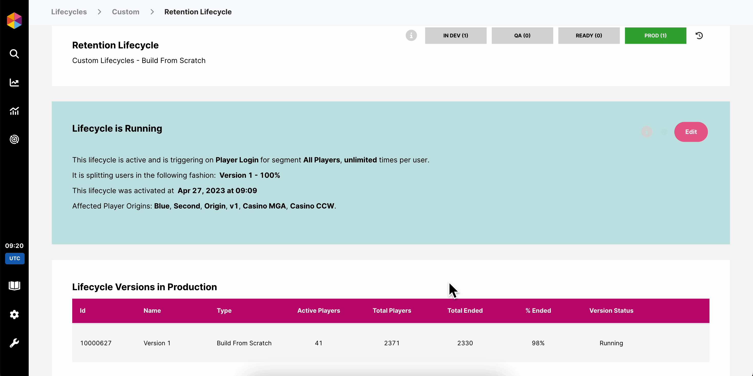 Si desea eliminar jugadores bloqueados de su lifecycle, puede hacerlo eliminándolos manualmente. Primero, debe verificar el/los ID(s) de Usuario del/los jugador(es) que desea eliminar del lifecycle. A continuación, navegue a la versión de su lifecycle, seleccione usuarios en esta versión, seleccione el/los ID(s) de Usuario y seleccione eliminar jugadores del lifecycle.