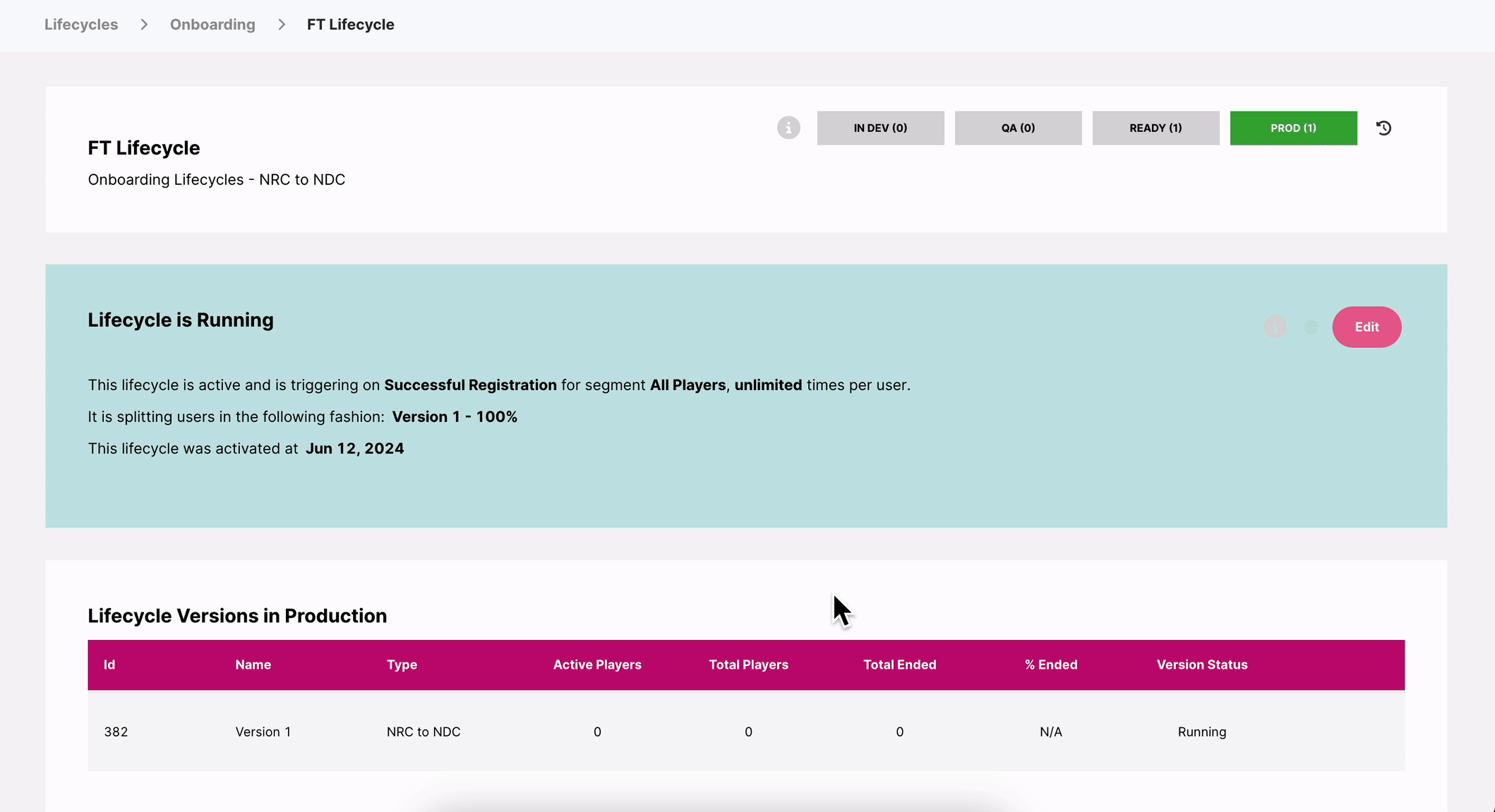 De esta manera ahora tiene la nueva versión del Lifecycle en vivo sin un grupo de control y sin interrumpir el flujo de sus jugadores que entran en el Lifecycle en ningún momento.