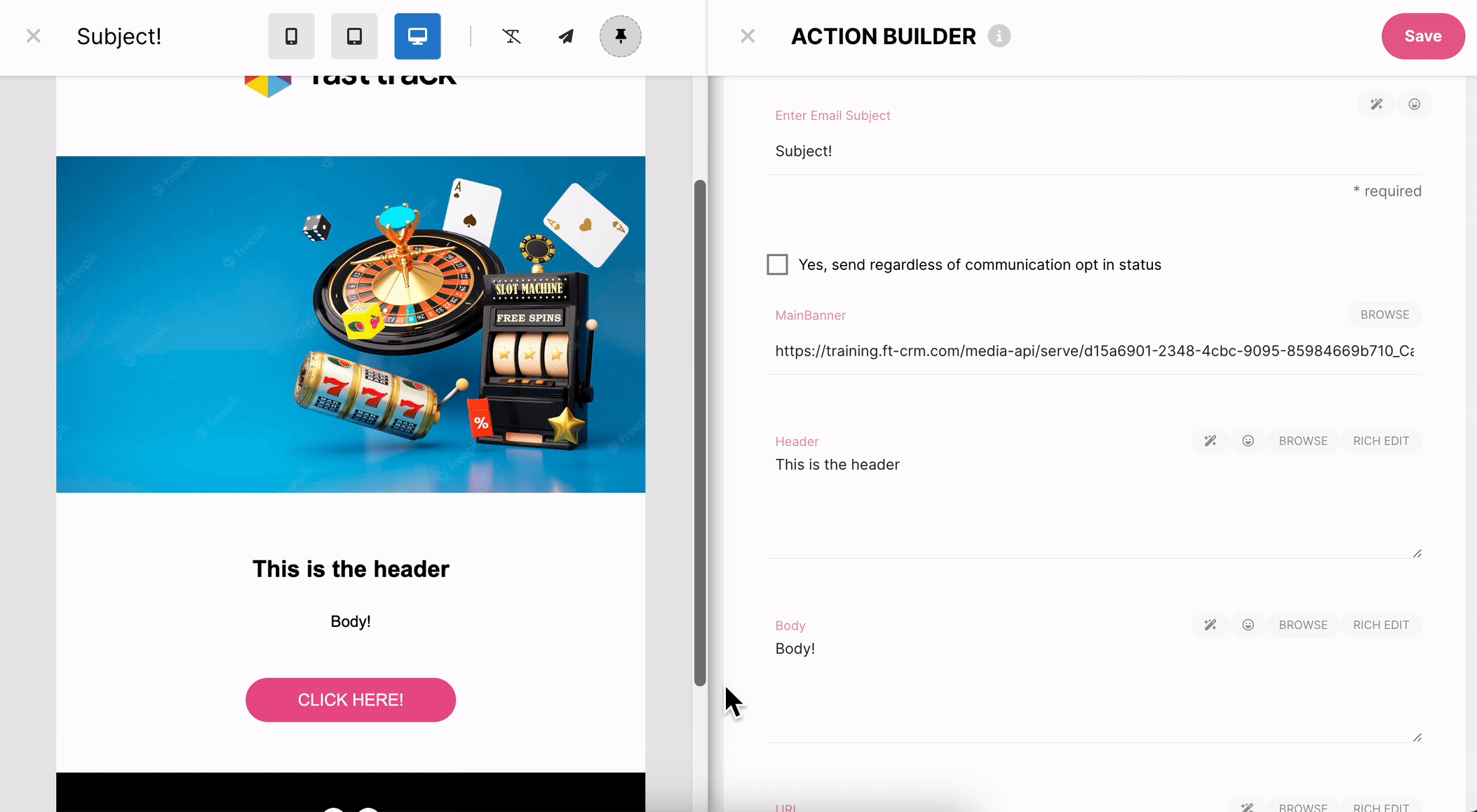 Al igual que al agregar texto a tus correos, también puedes convertir tus banners e imágenes estándar en marcadores de posición. Para que esto sea posible, necesitas configurar tu Plantilla de Correo en consecuencia.