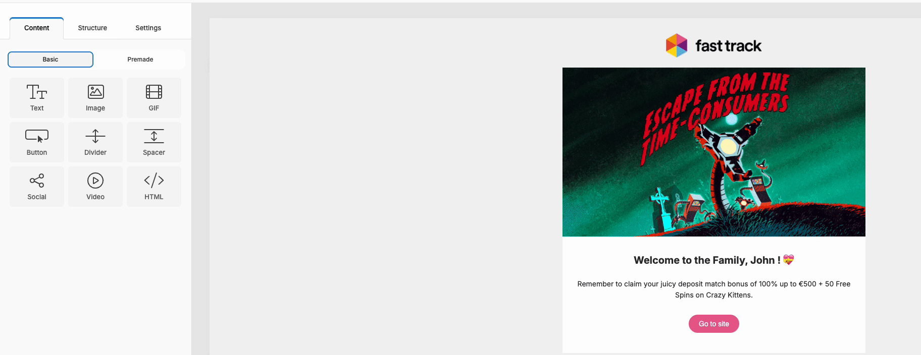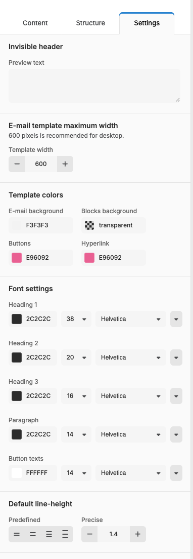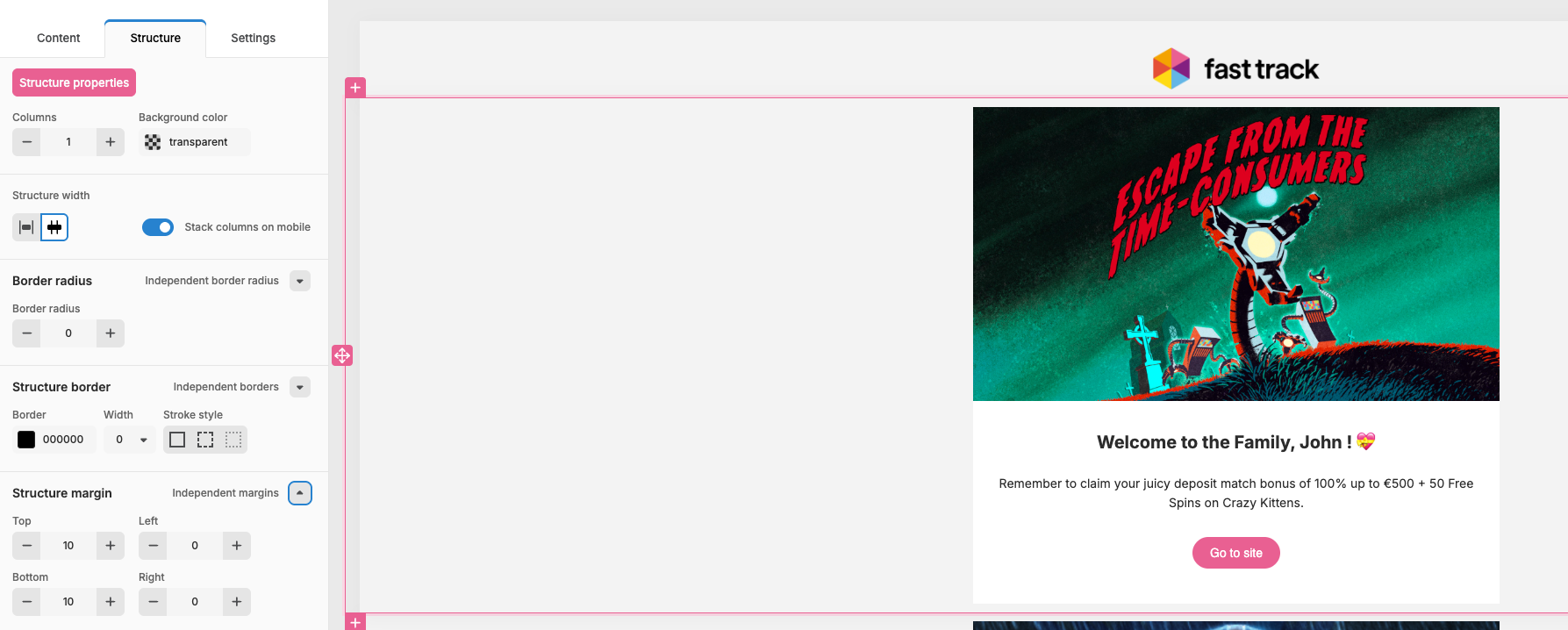 La Estructura sección es donde el diseño de tu correo electrónico cobra vida.