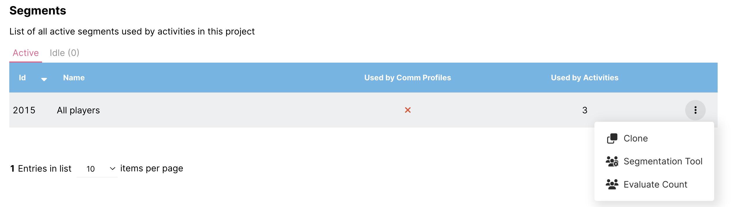 - Evaluar el recuento del segmento desde un Segmento en uso en el Proyecto