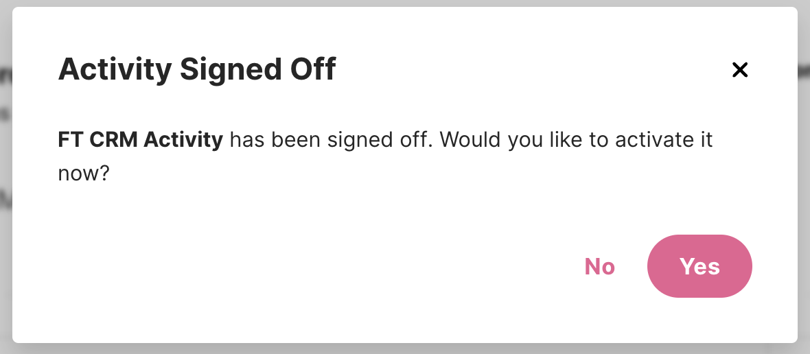 - Elegir aprobar una Actividad pero no activarla en este momento. La Actividad puede ser habilitado más tarde. Esto podría ser útil en caso de que la persona que hace la QA no sea el mismo miembro del equipo que necesita habilitar la Actividad.