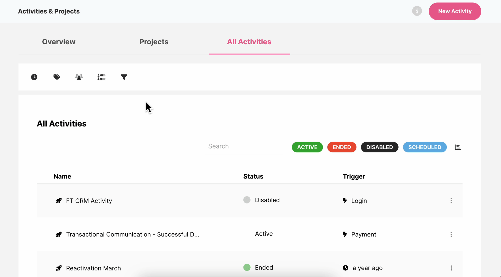 Al poder filtrar y agrupar Actividades basadas en estos atributos, significa que podemos acceder fácilmente a estas Actividades y a sus paneles de conversión para comprobar el éxito de nuestros compromisos.