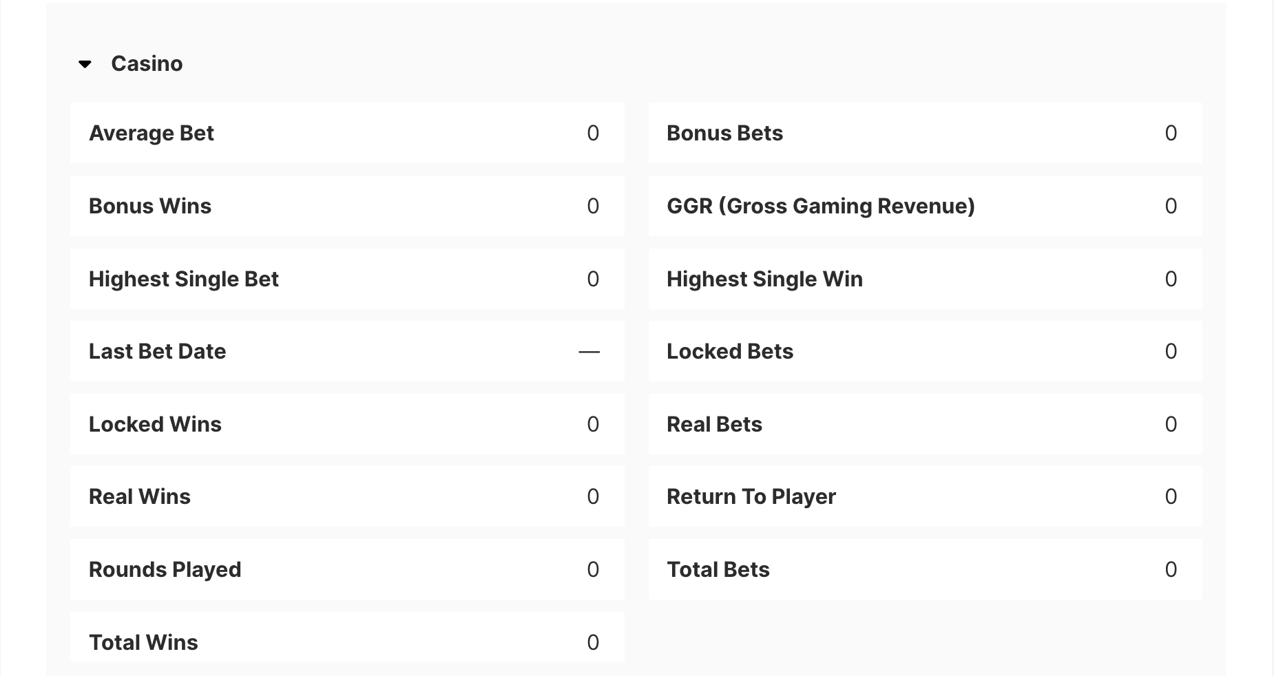 Datos específicos del jugador de Casino como: