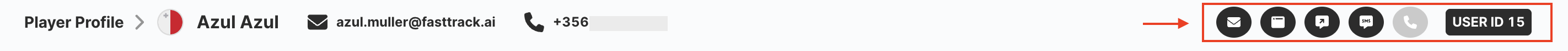 En la parte superior del Perfil del Jugador, encontrarás un conjunto de iconos de canales de comunicación que te permiten identificar rápidamente si un jugador está suscrito o dado de baja de cada canal de comunicación.