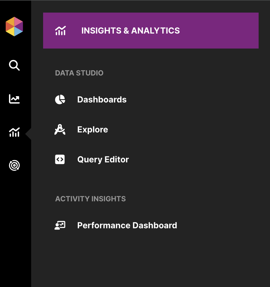Una vez que tengas acceso a Data Studio, puedes navegar a los Dashboards desde el menú principal: Insights & Analytics -> Dashboards