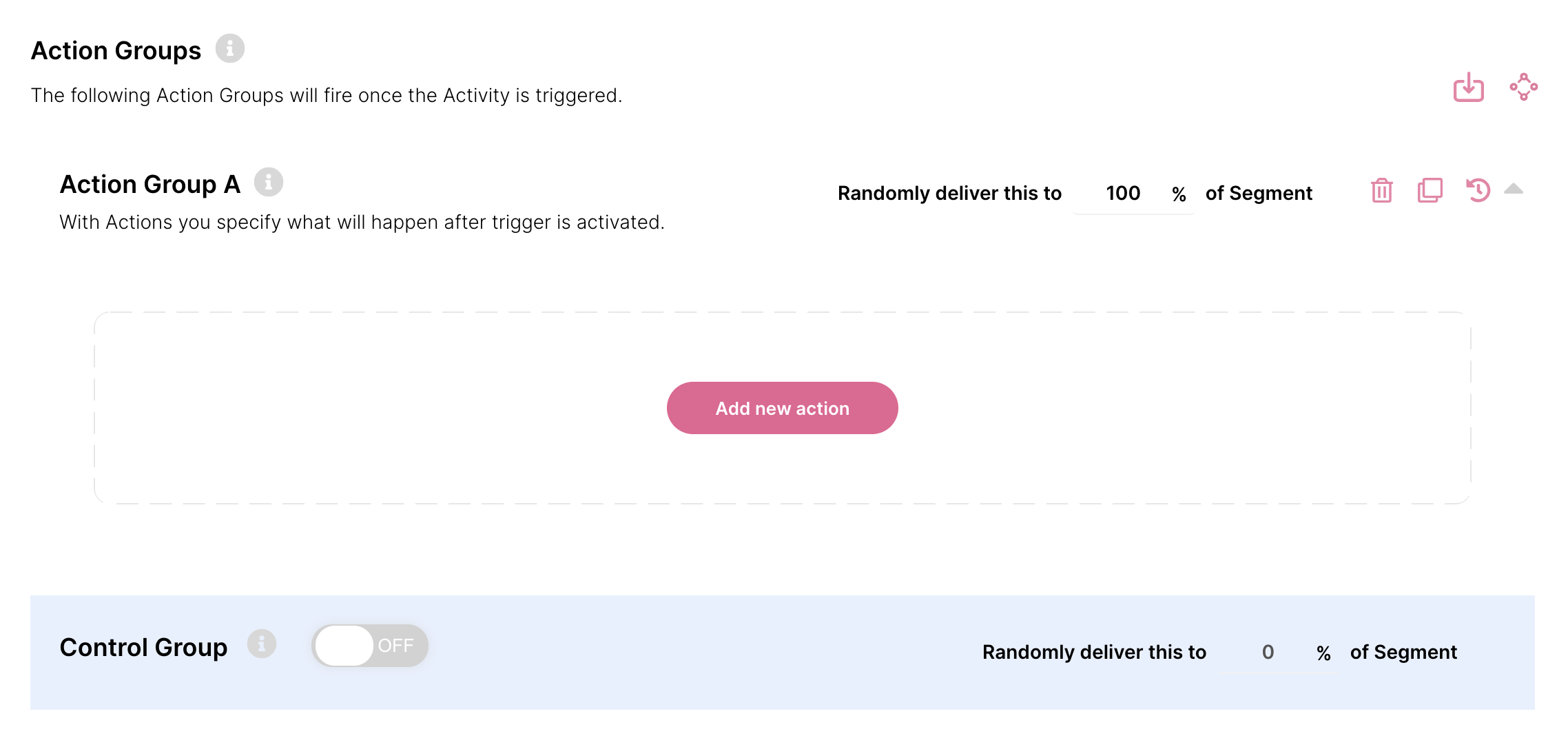 Comenzamos agregando un nuevo grupo de acciones seguido de agregar las acciones una por una.