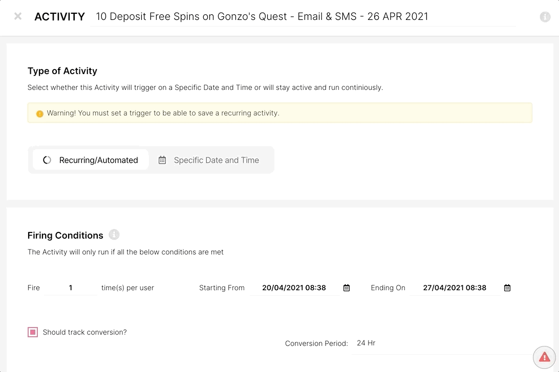 Si quieres aprender cómo configurar una actividad Recurrente/Automatizada, entonces lee aquí para más información.