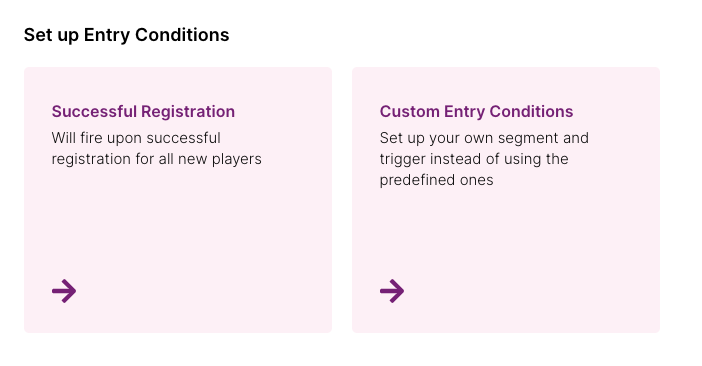 Una vez que hayas seleccionado la plantilla, es momento de definir las condiciones de entrada para el lifecycle. Estas están pre-pobladas con condiciones según la plantilla que hayas seleccionado.