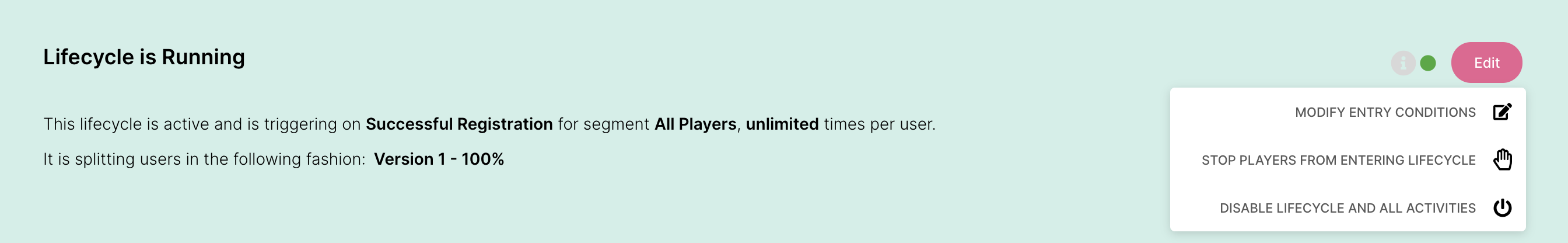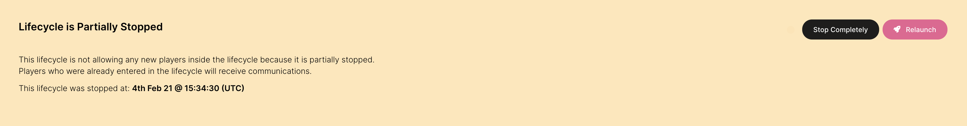 Queremos detener el lifecycle para que nuevos jugadores no puedan entrar y para que los jugadores existentes dentro del lifecycle continúen su jornada. De esta manera podemos analizar los datos y ver qué tan efectiva ha sido nuestra campaña.