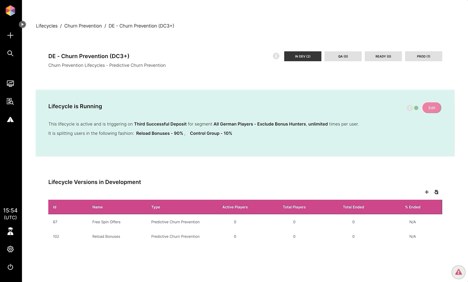 Una vez que ha sido archivado, todavía puedes ver el contenido del Ciclo de Vida, ver los resultados de conversión, los jugadores que estaban en el Ciclo de Vida y ver el registro de cambios.