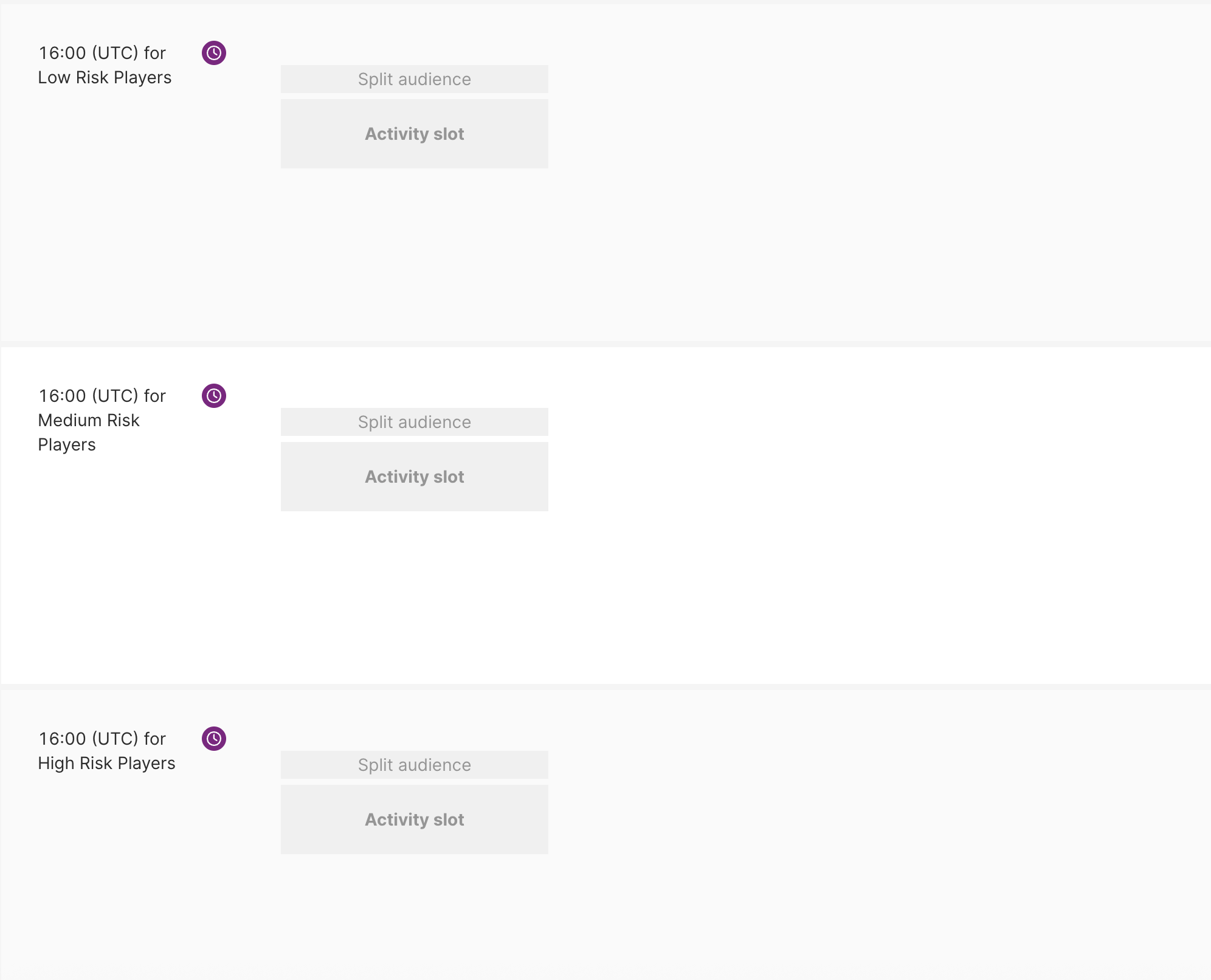 A cada jugador se le asigna una puntuación de probabilidad de abandono (0–100%), que se actualiza automáticamente cada 24 horas. Basándose en estas puntuaciones, los jugadores se mueven dinámicamente entre segmentos, que determinan qué ofertas reciben.