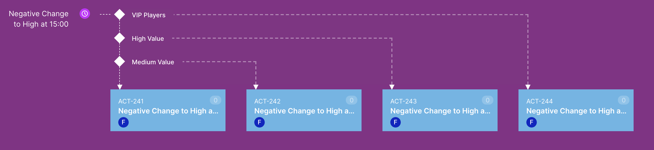 Usa esta plantilla para dirigirte a jugadores inactivos y traerlos de vuelta al sitio con un ciclo de vida de reactivación de múltiples pasos contundente.
