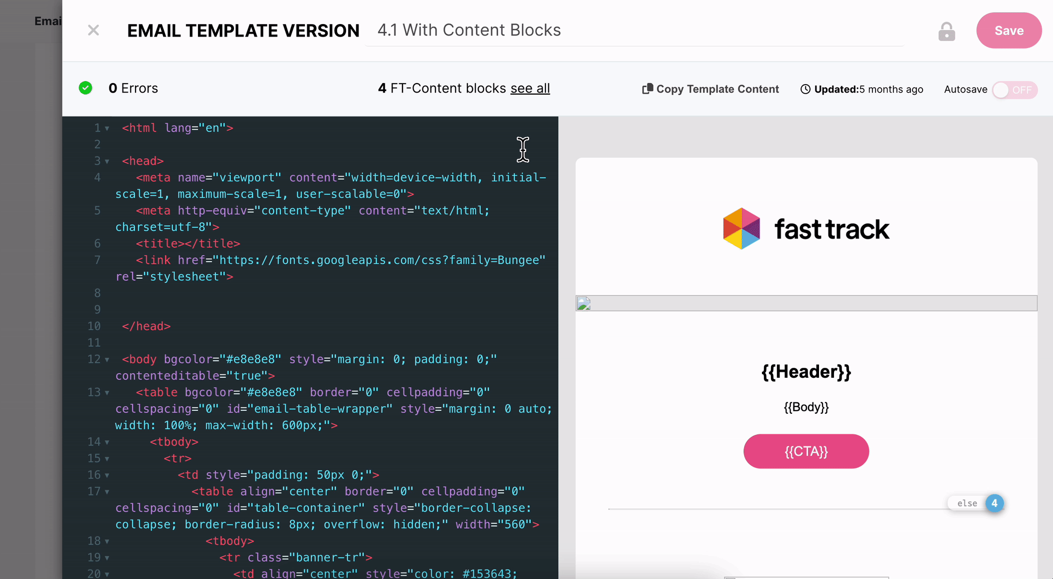 Ative o recurso de salvamento automático no seu modelo de email para salvar automaticamente o progresso, a cada poucos segundos, enquanto trabalha.