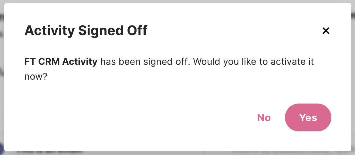 Se desejar manter uma Atividade desativada, basta clicar em 'Não' após aprová-la.