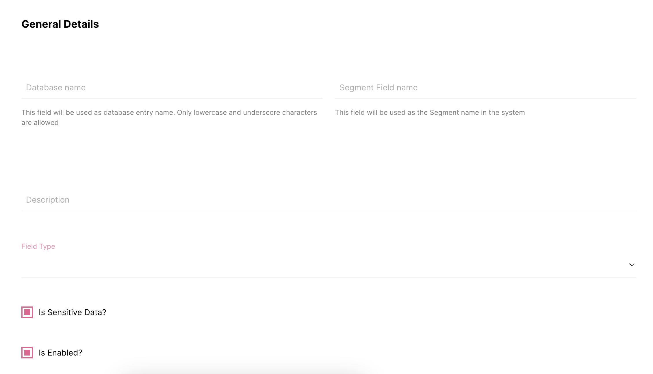 - Dados Sensíveis - selecione "É dado sensível?" para tornar seu campo de segmento calculado visível apenas para usuários com as permissões corretas em Usuários & Permissões.