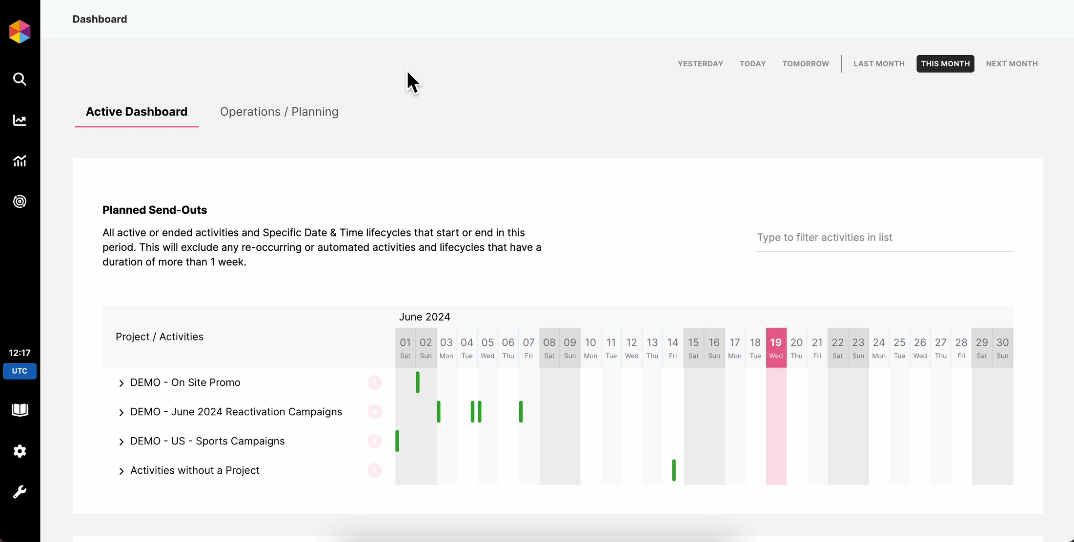 O Dashboard de Jogadores Ativos, ou Dashboard de Segmentação como também é conhecido, oferece uma visão geral de todos os seus jogadores e do quão ativos estão de acordo com o Modelo de Probabilidade de Retorno.