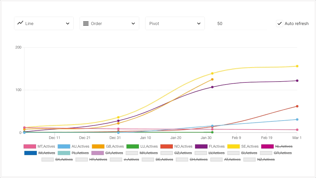 🙋 Observe que riscar valores, como acima, não armazenará a configuração nem a salvará para um Widget. Se você quiser incluir apenas países específicos no seu gráfico, em todos os momentos, precisa adicionar filtros. Mostraremos como fazer isso no próximo exemplo.