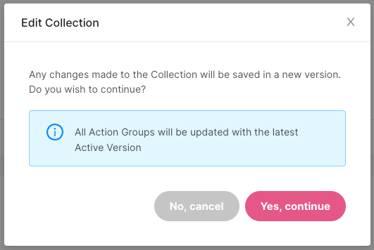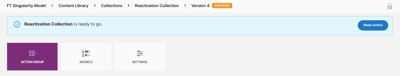 Para que uma Collection seja usada em uma Atividade/Ciclo de Vida (recurso em breve), a Collection precisa ter pelo menos uma versão Ativa.