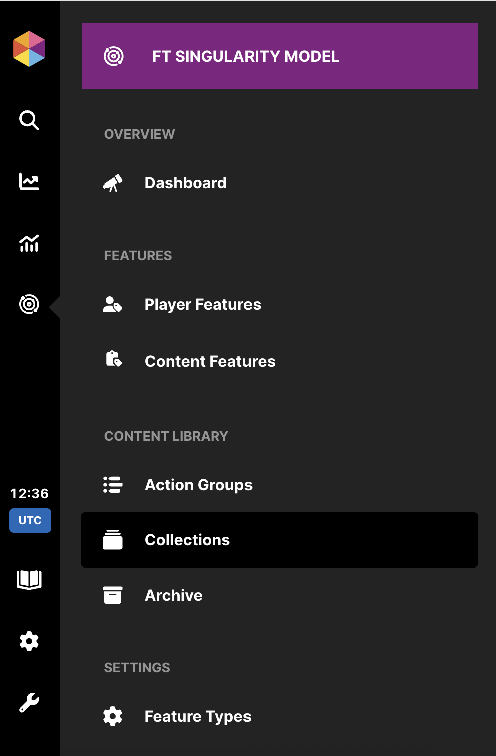 Navegue até Collections pelo Menu -> FT Singularity Model -> Biblioteca de Conteúdo -> Collections.