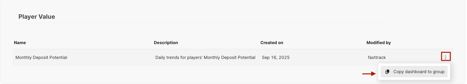 - Na seção Painéis do Sistema, clique nos três pontos perto do seu painel e selecione "Copiar Painel para grupo".