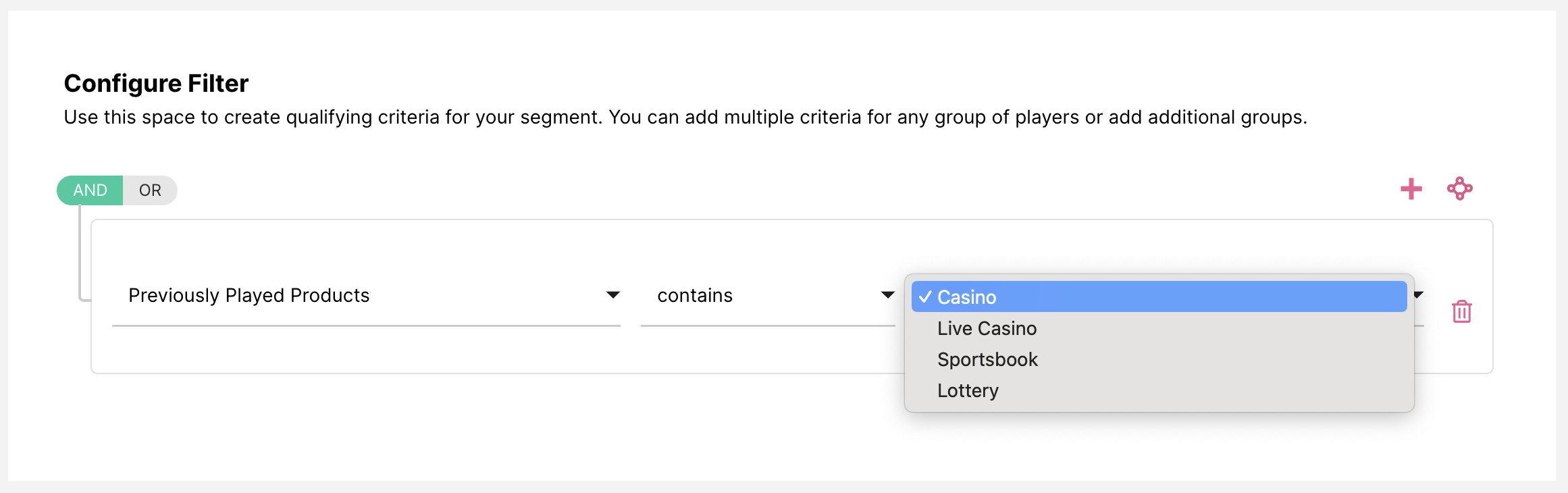 O objetivo do Produtos Jogados Anteriormente A funcionalidade do jogador é poder identificar todos os verticais de produto nos quais o jogador apostou historicamente. Isso permitirá segmentar e direcionar jogadores com base nos verticais em que jogam no seu site.