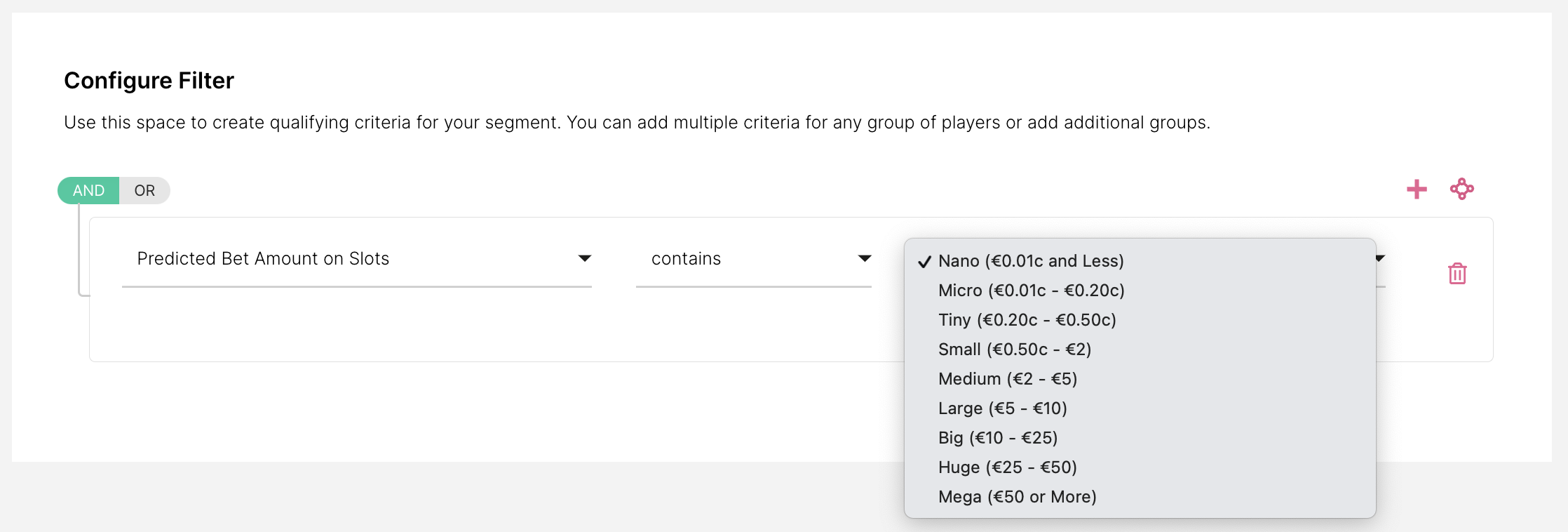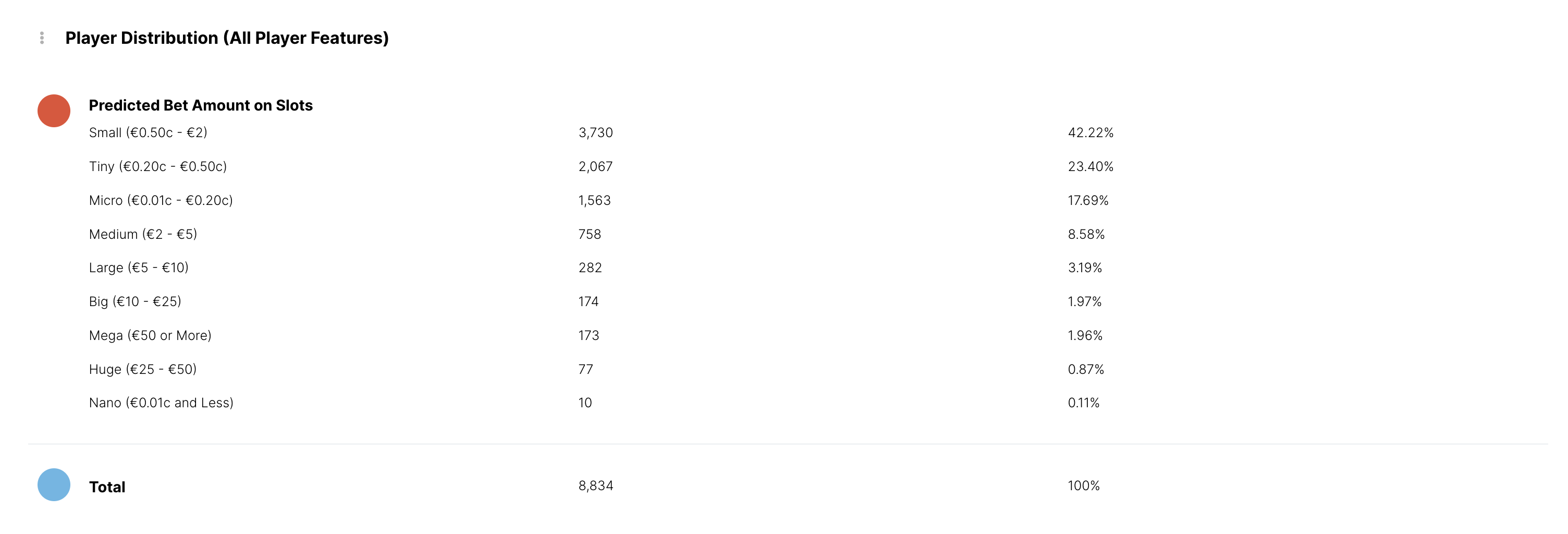 O objetivo da Montante de Aposta Previsto em Slots Funcionalidade do Jogador é poder analisar todas as sessões que o jogador teve durante o seu último Estado Ativo e usar esta informação para prever qual será o tamanho da sua aposta futura. O estado Ativo é determinado no Lifestage Funcionalidade do Jogador.