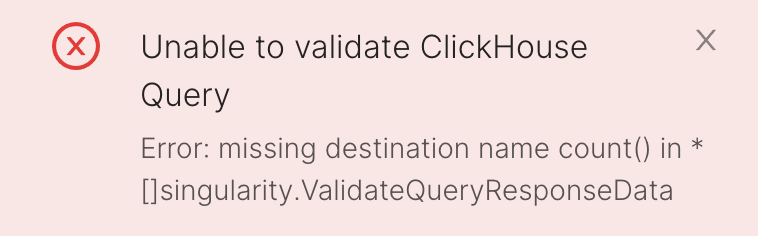 Se você fizer alterações em uma computação de consulta baseada em tempo existente que não esteja formatada corretamente, receberá um erro semelhante à imagem abaixo👇 e a consulta não será validada.