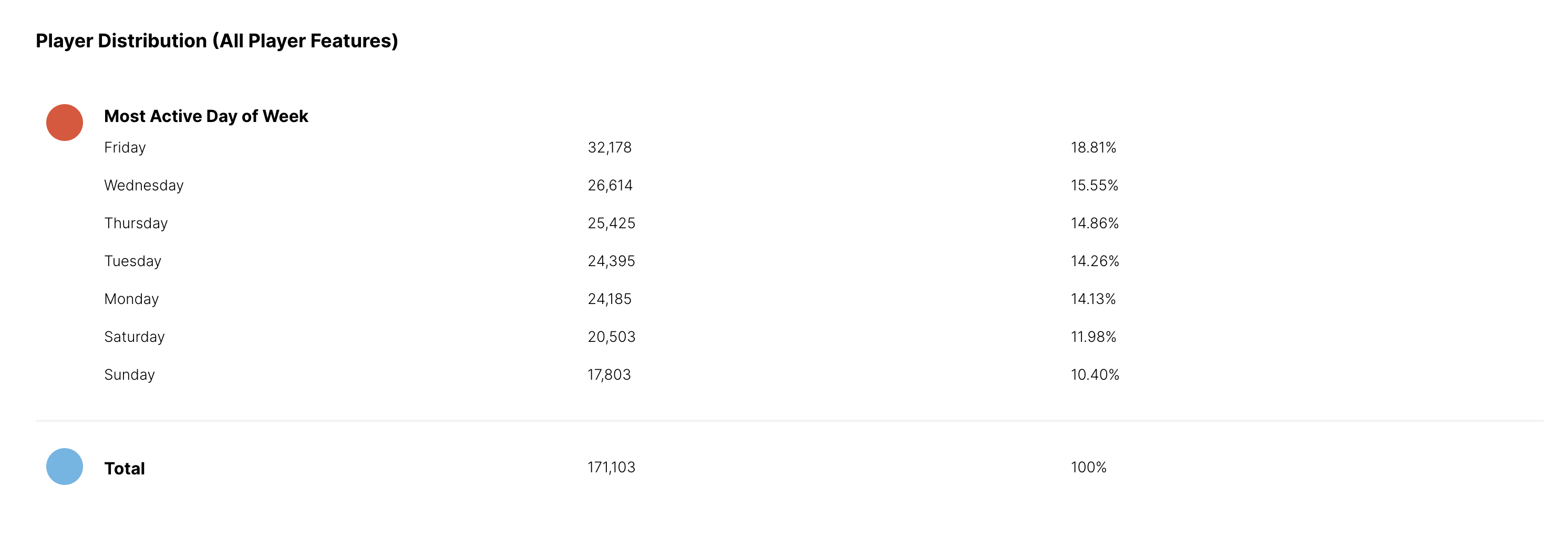 Como você pode ver na imagem acima ☝️, você obterá uma segmentação do Recurso de Jogador por classe com o número total de jogadores que atualmente pertencem a cada classe, bem como a porcentagem que isso representa em seu banco de dados de jogadores.