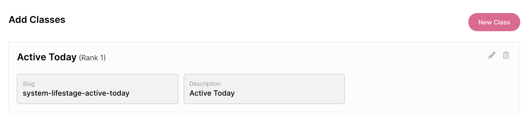 Dentro de um Tipo de Recurso, você pode editar ✍️ ou excluir 🗑 uma classe selecionando o ícone relevante no lado direito.