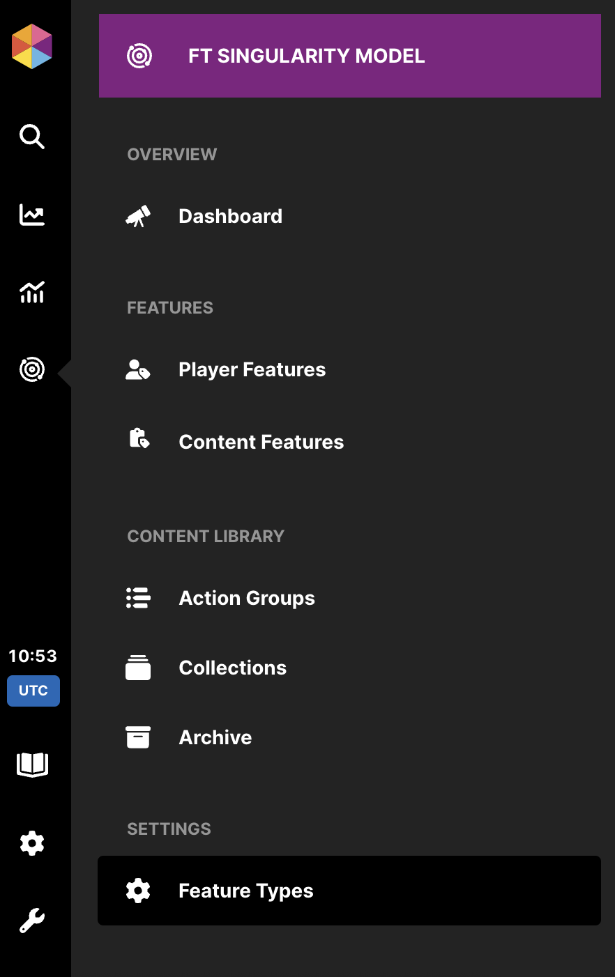 Navegue até os Tipos de Recurso a partir do Menu -> Modelo FT Singularity -> Configurações -> Tipos de Recurso.