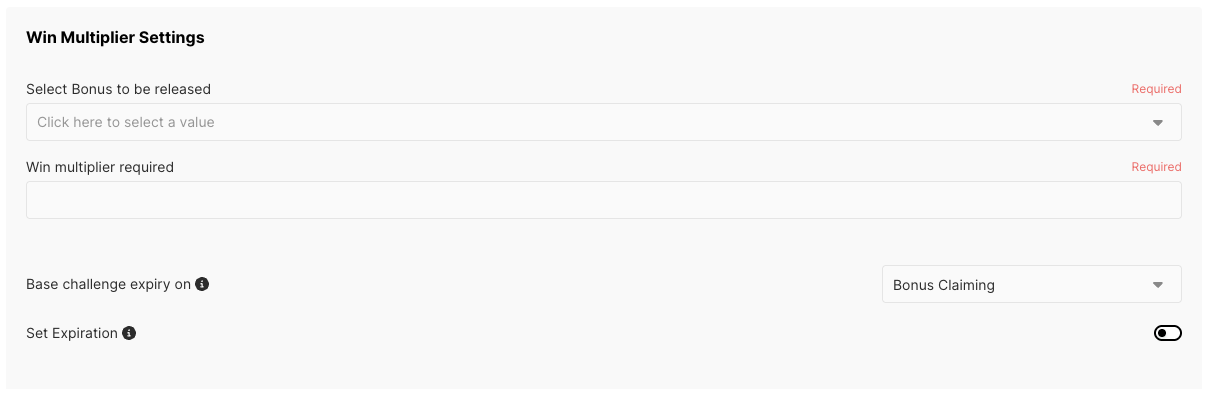 - Herança de Expiração: Quando ativado, o Desafio usa as mesmas configurações de expiração que o Bónus. Isso significa que o Desafio expira ao mesmo tempo que o Bónus, e você não poderá definir uma expiração separada para o Desafio ativo.