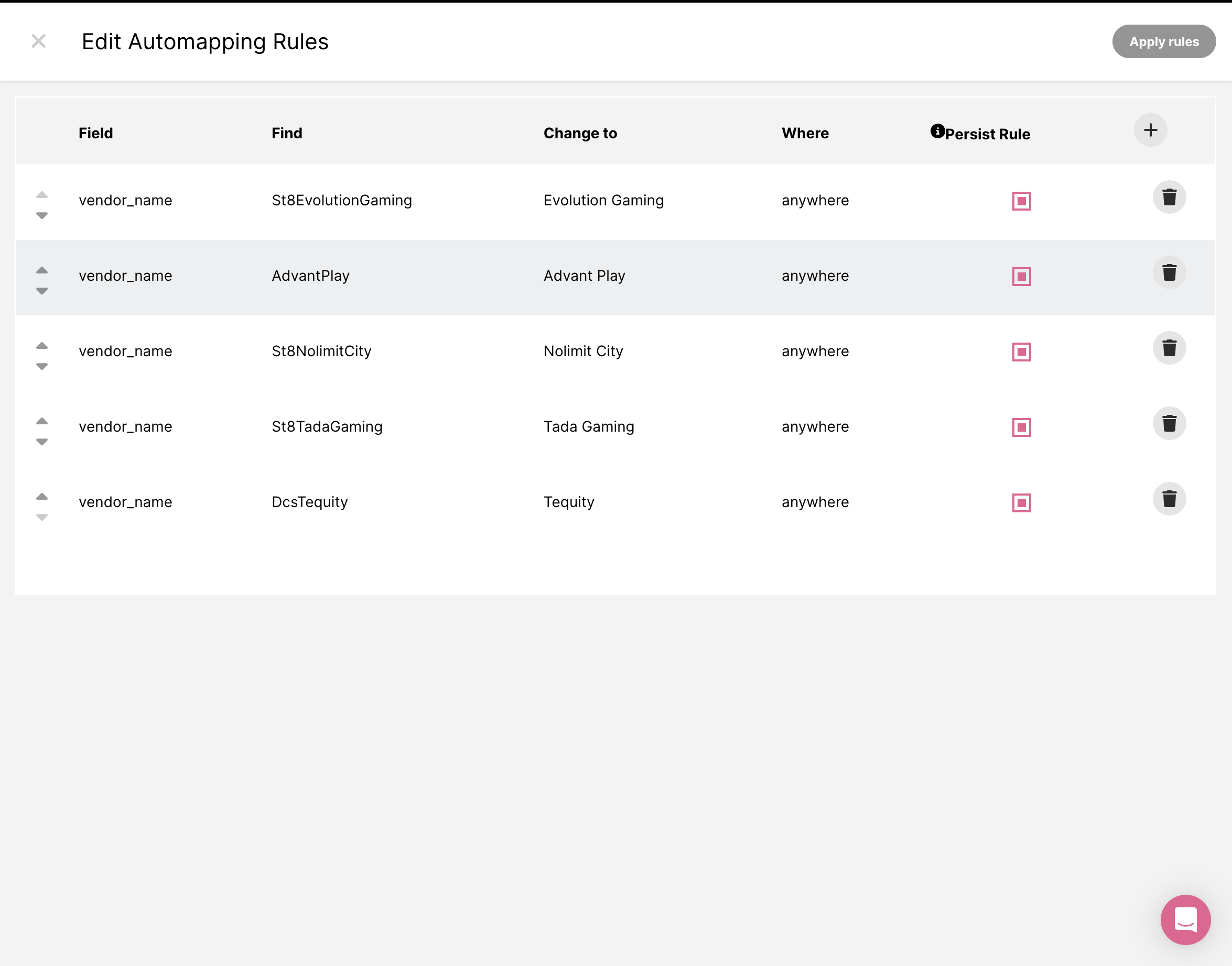 Aqui está um exemplo de regras de mapeamento automático que você poderia criar: