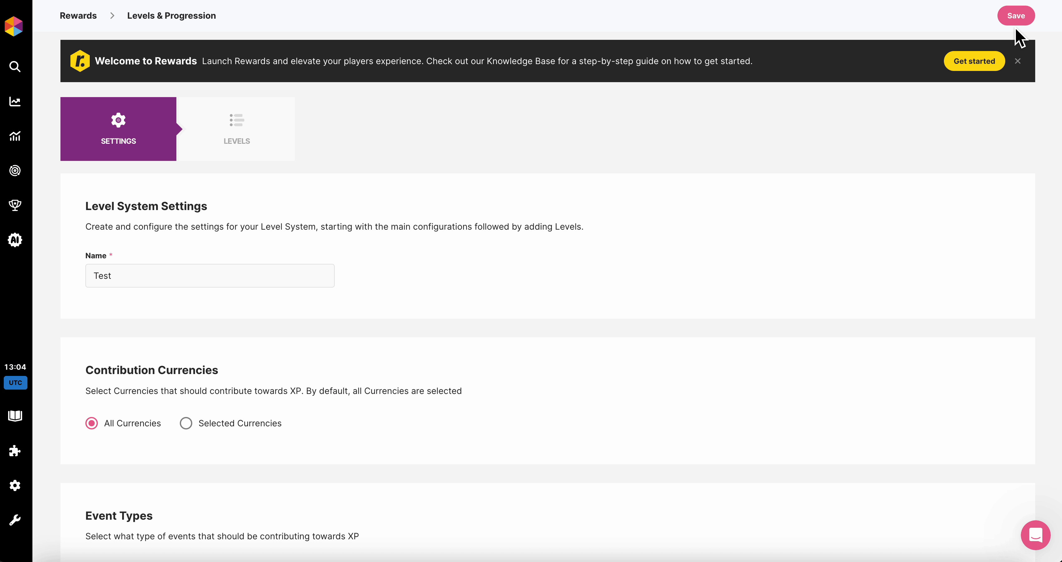 Select if all currencies or only specific currencies will contribute to your Level System - more info on how to setup these currencies can be found in our Rewards Step-by-Step guide here.