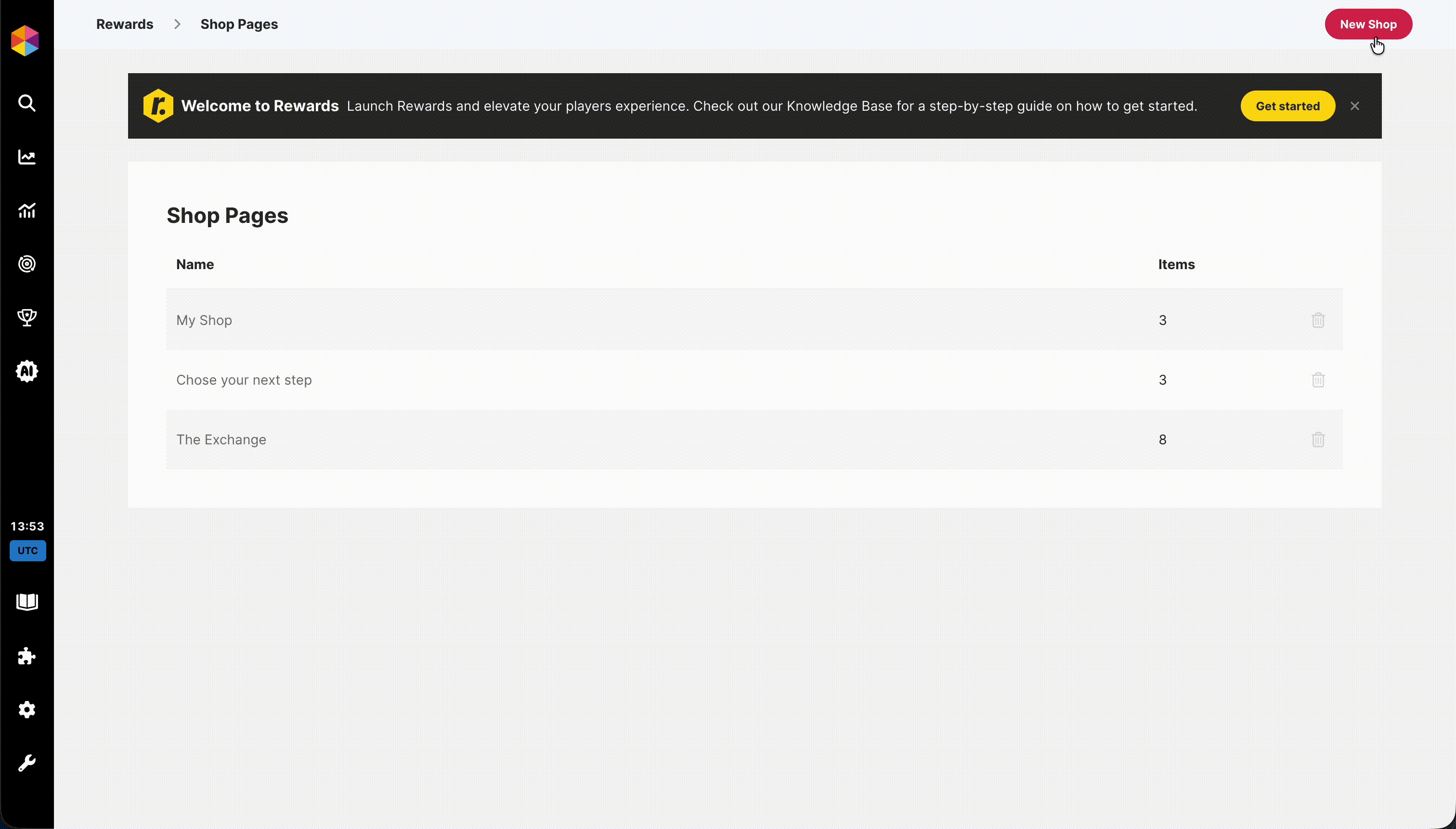 Você pode adicionar e gerenciar suas Lojas ao navegar para Recompensas -> Lojas.