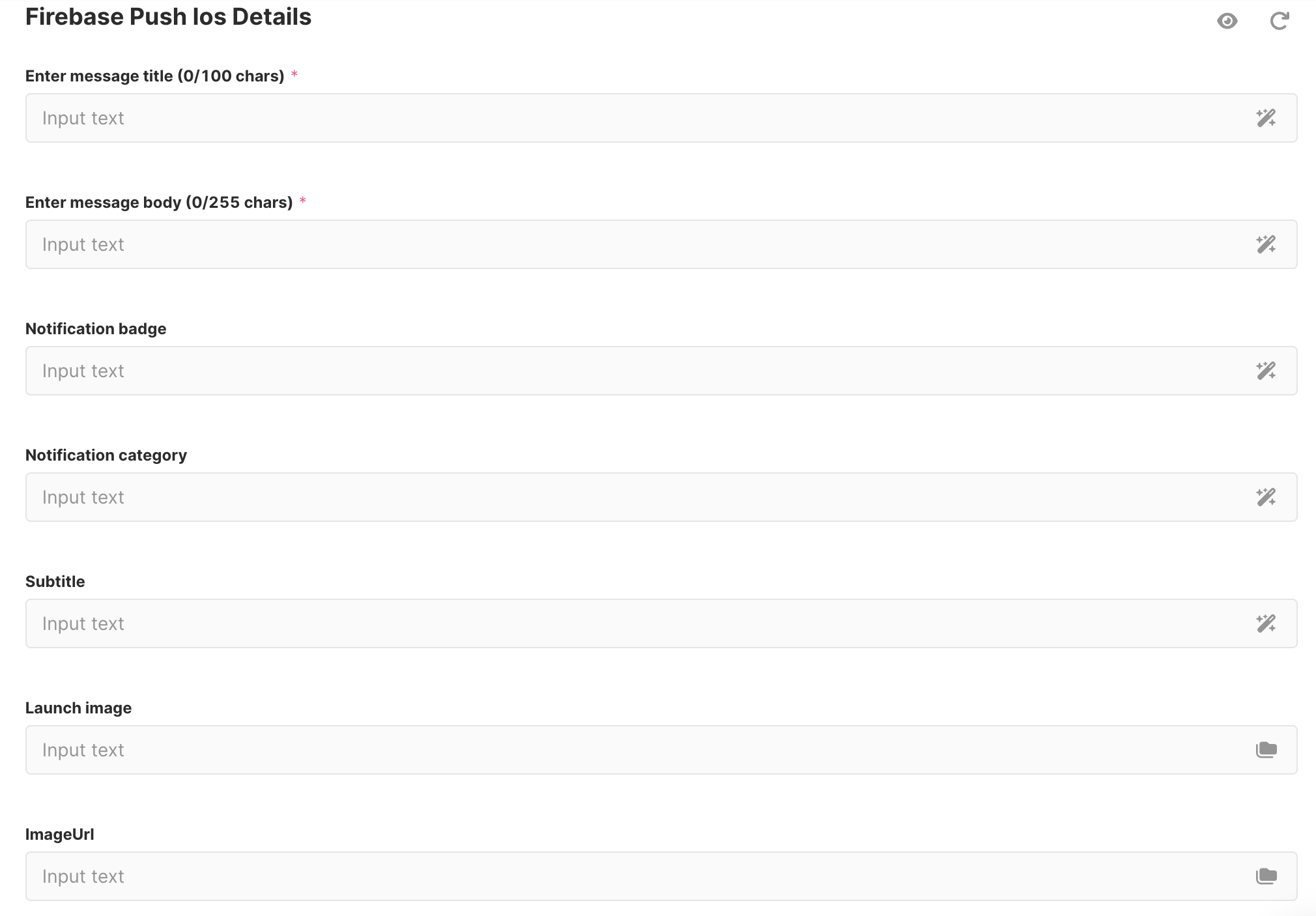 1- First, choose the type of Action you want to create (For example, Firebase Push iOS/Android or Firebase Simple Push).